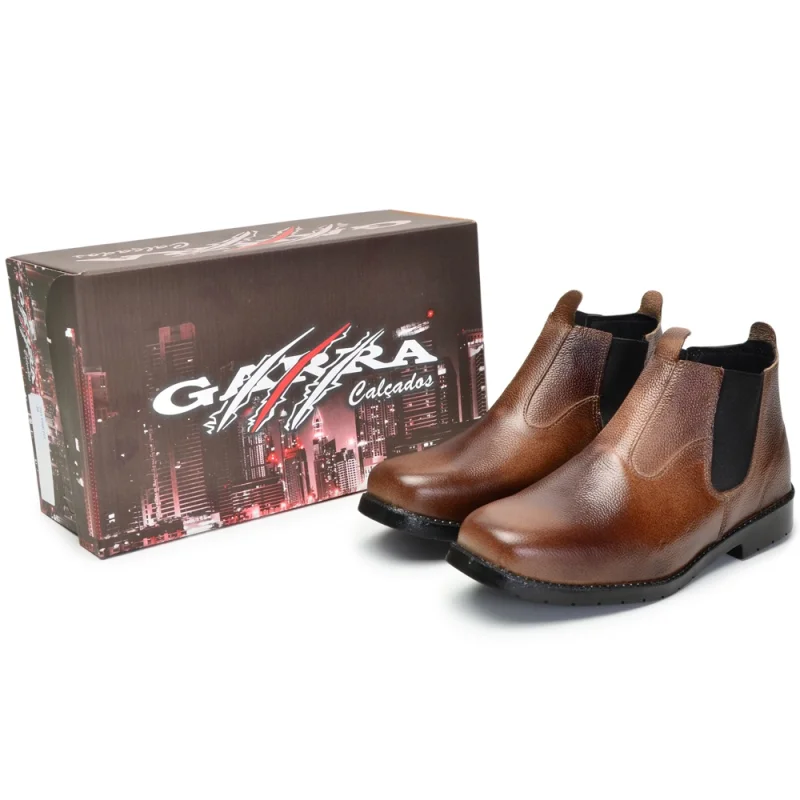 Compre a Botina Masculina de Couro Legítimo com Sola de Borracha Costurada e Colada na loja online Raryel. Aproveite nossos preços baixos, promoções e descontos exclusivos. Produto resistente e durável, ideal para o dia a dia.