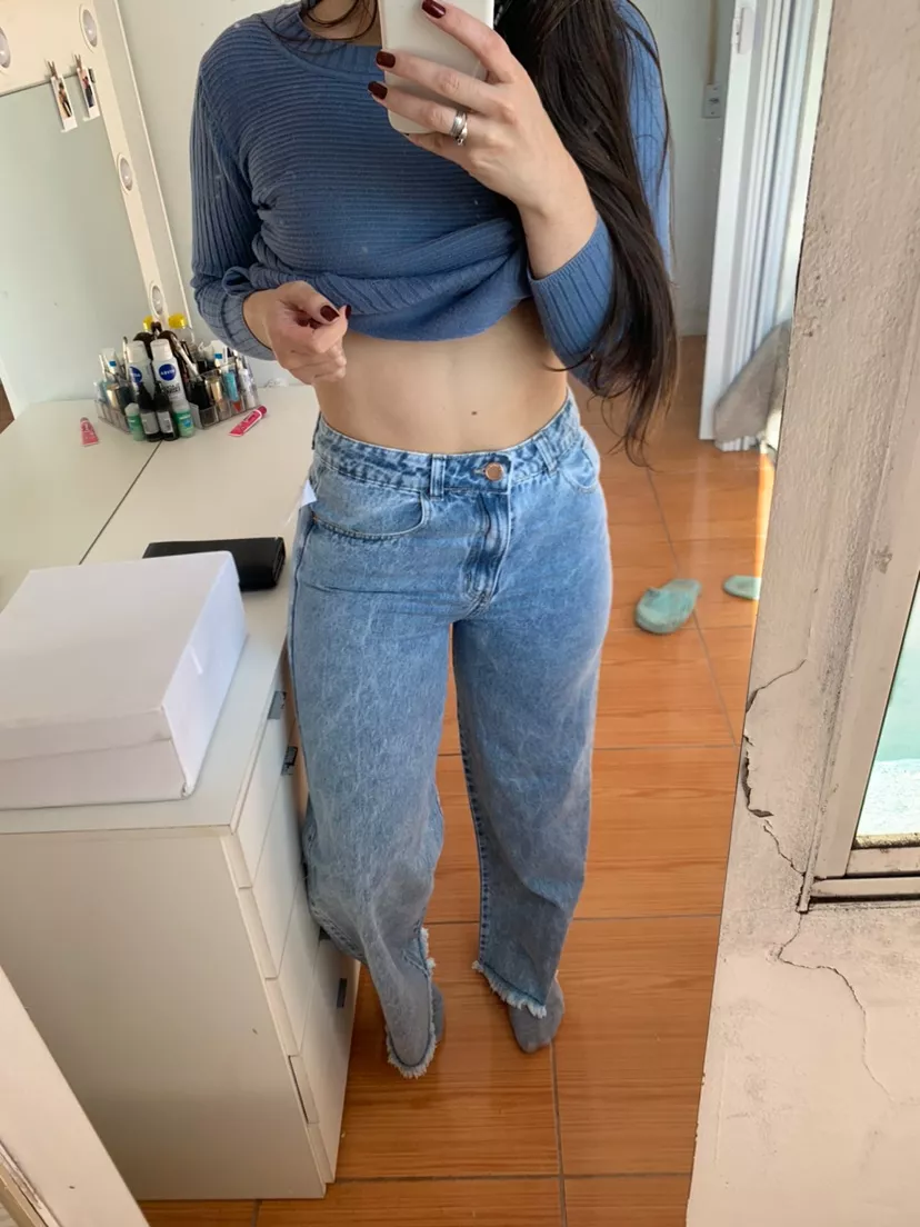 Wide Leg Jeans Pantalona Feminina Calça Cintura Alta de alta qualidade oferecendo ótimo caimento e modelando o corpo