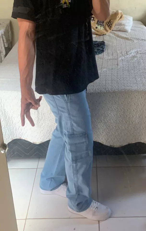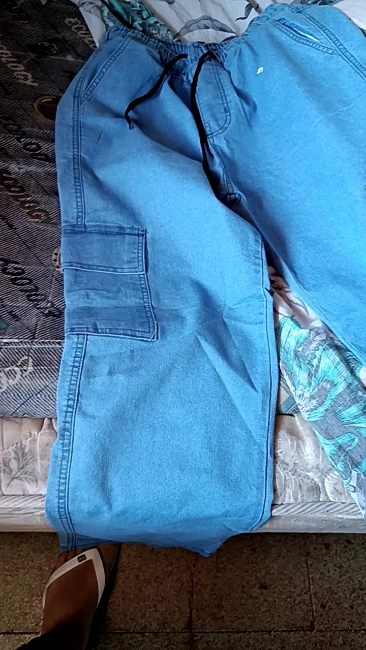 Compre a calça cargo jeans unissex barra larga com 6 bolsos na loja online de roupas Raryel. Aproveite nossos preços baixos, promoções e descontos exclusivos!