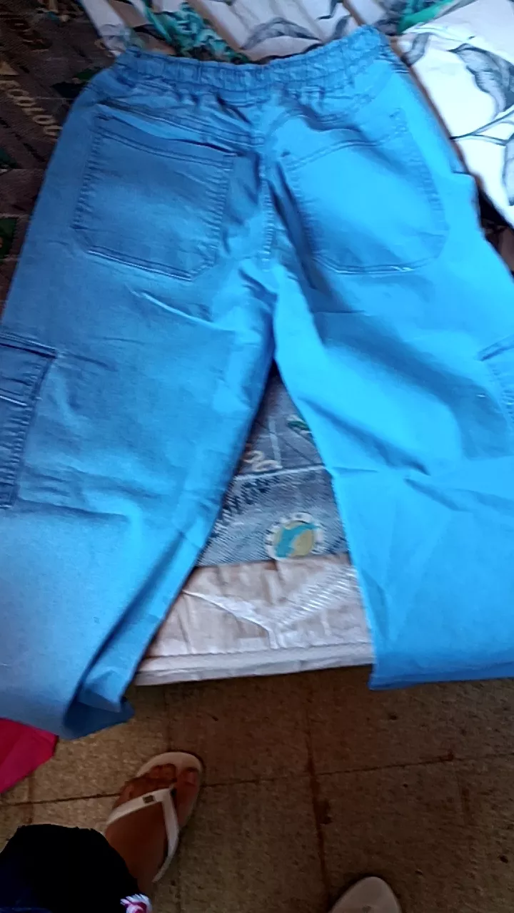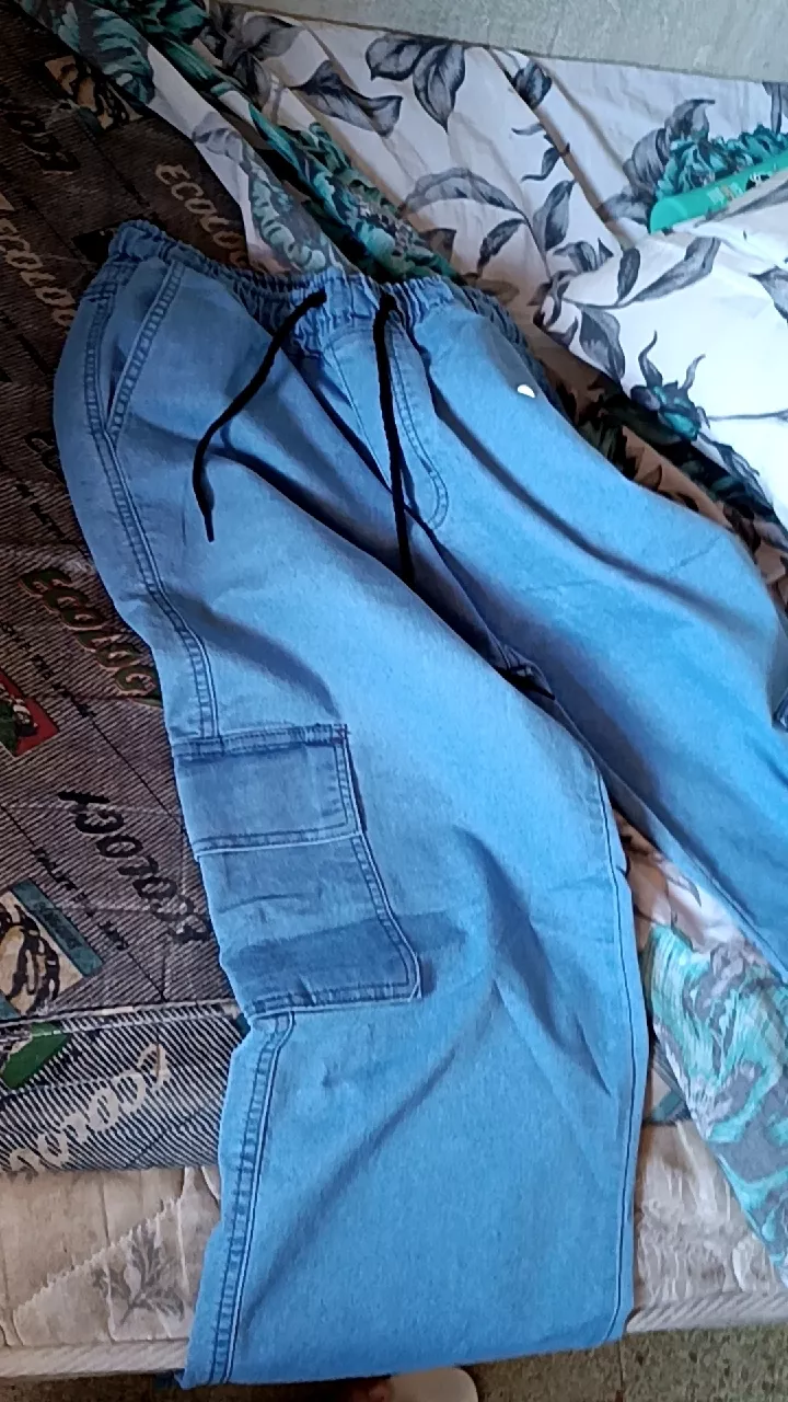 calça cargo jeans com elástico na cintura e cordão