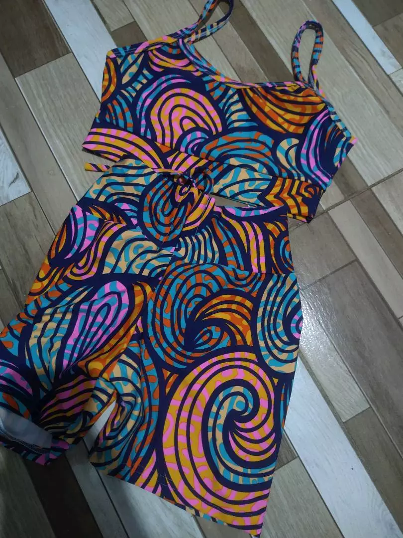 Ambos os cos do top e da calça são da cor branca