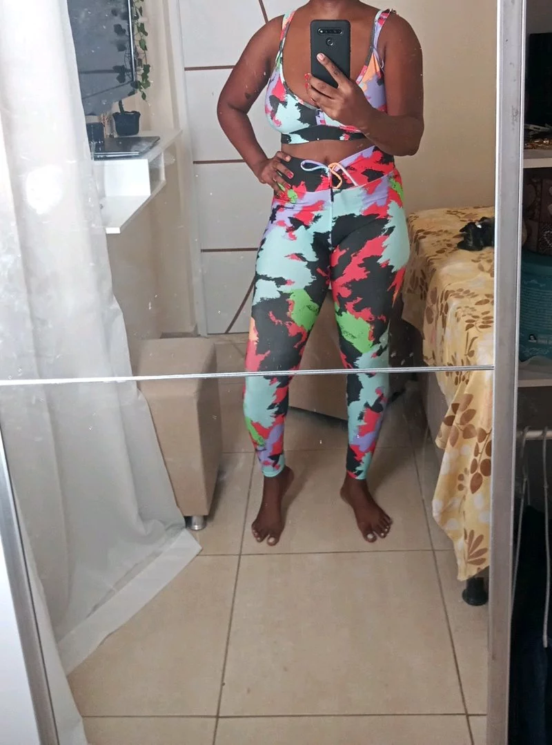 Compre o conjunto fitness calça legging com top com babado na loja online Raryel. Tenha conforto e estilo durante seus treinos. Aproveite preços baixos, promoções e descontos exclusivos!