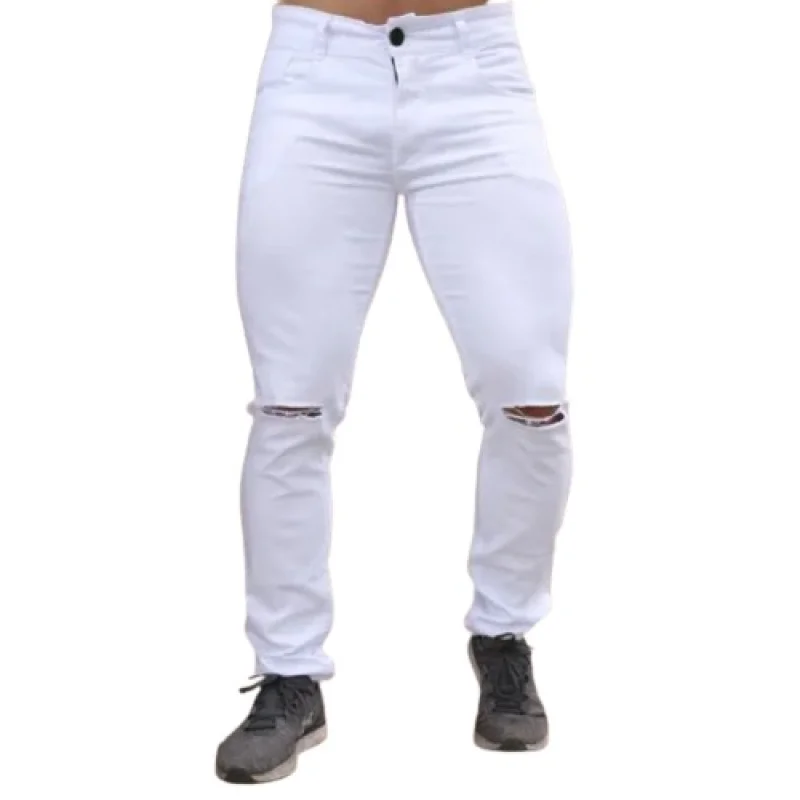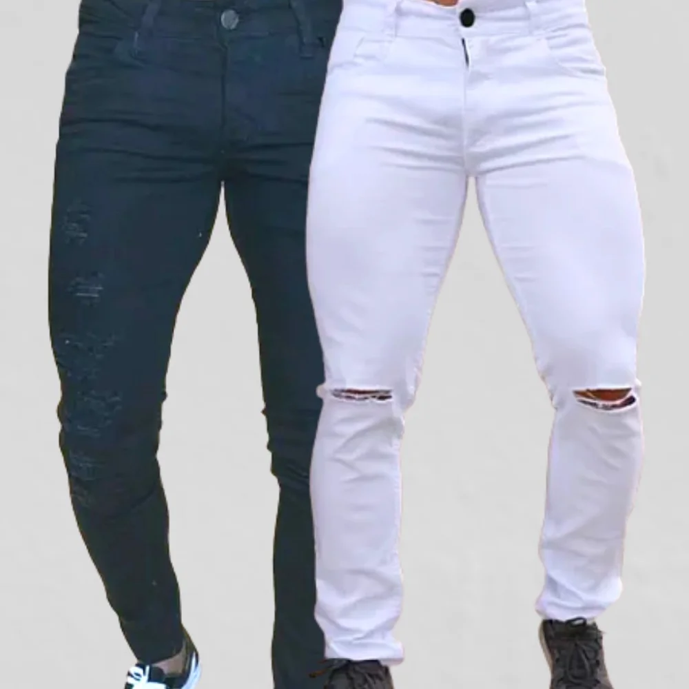 Compre a Calça Masculina Preta e Branca Jeans Skinny Destroyed com Lycra na loja online Raryel. Aproveite preços baixos, promoções e descontos exclusivos!