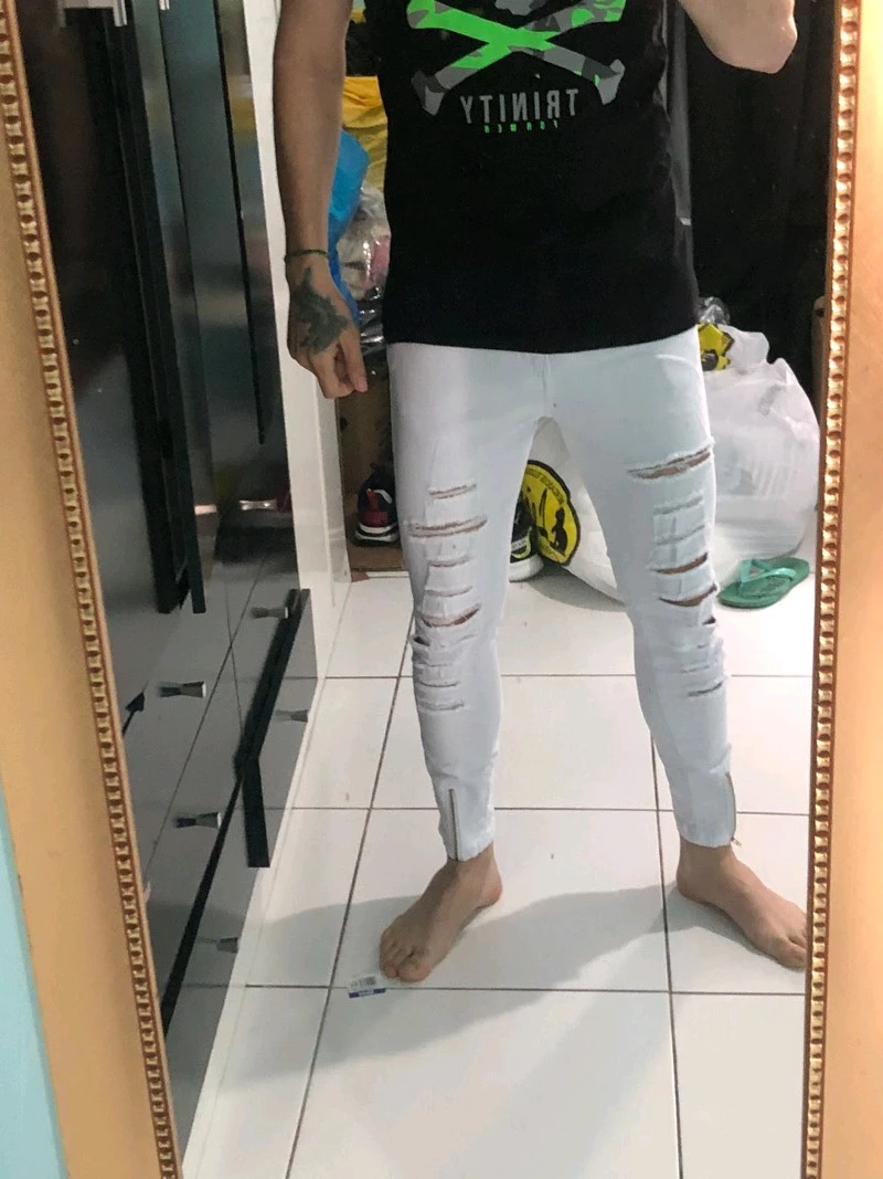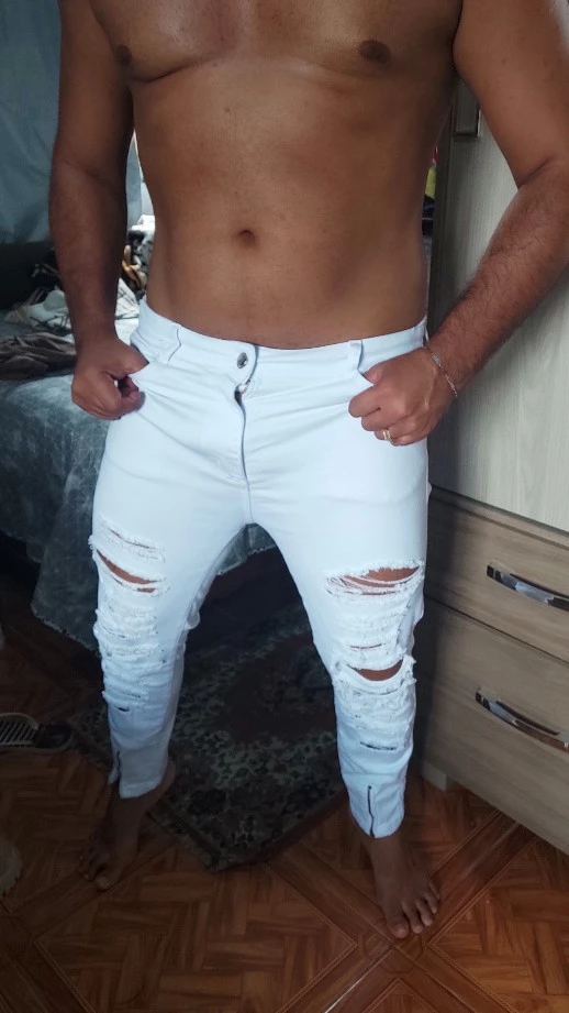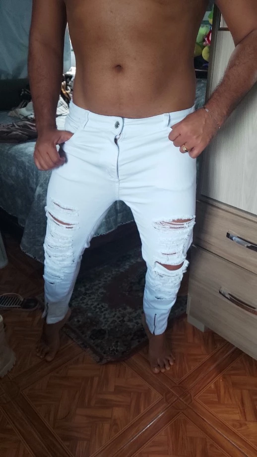 Compre a Calça Skinny Masculina Branca com Zíper da marca bAllAd na loja online de roupas Raryel. Feita em jeans com lycra, oferece conforto e estilo para o seu dia a dia. Aproveite nossos preços baixos e promoções!
