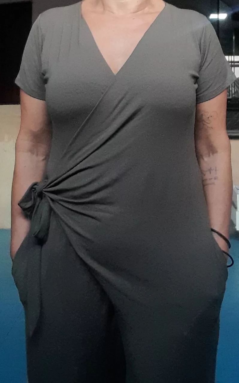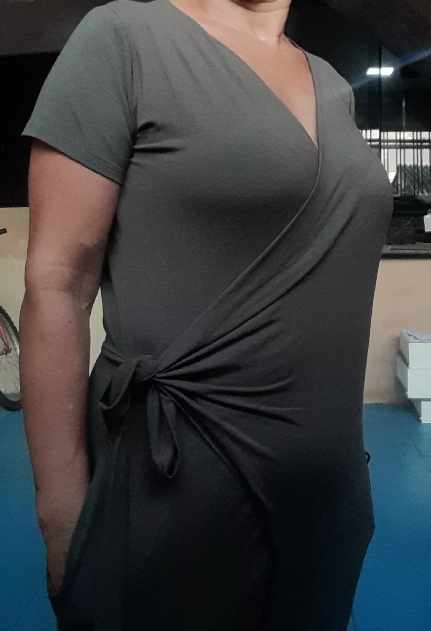 Compre o Macacão Feminino Transpassado com Amarração na cintura e detalhes de bolsos. Feito em viscolycra, proporciona conforto e estilo. Aproveite nossas promoções e descontos na loja online Raryel.