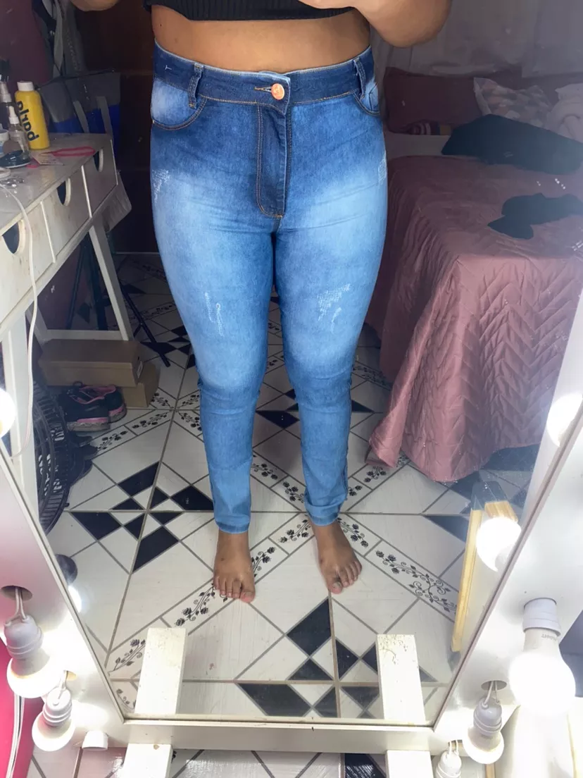 Compre o Kit com 2 Calças Jeans Feminino Cós Alto na Raryel. Modelagem Skinny que veste bem e levanta o bumbum. Feito com elastano, até o umbigo. Aproveite nossos preços baixos e promoções!