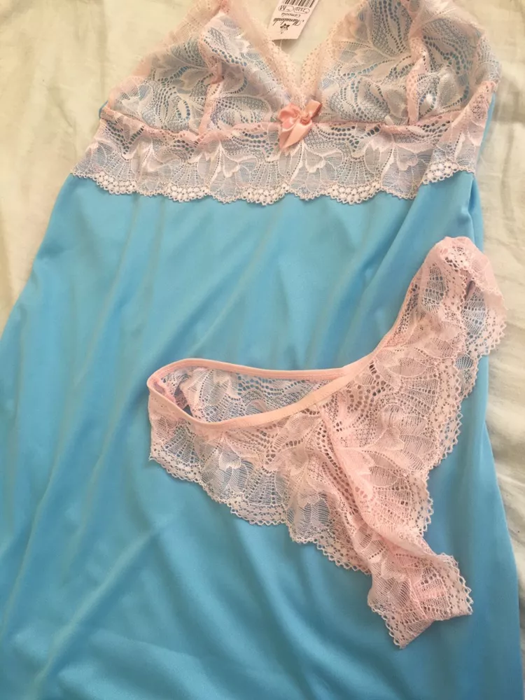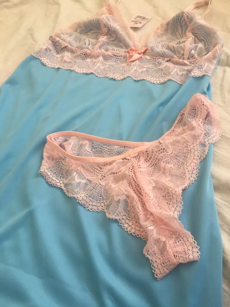 Calcinha com Camisola de Algodão Doce - Rosa com azul