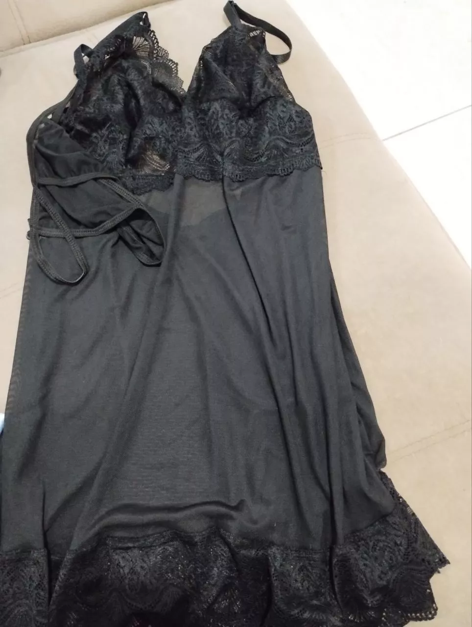 Camisola de Tule e Renda Com Calcinha Leve e confortavel veste muito bem o corpo