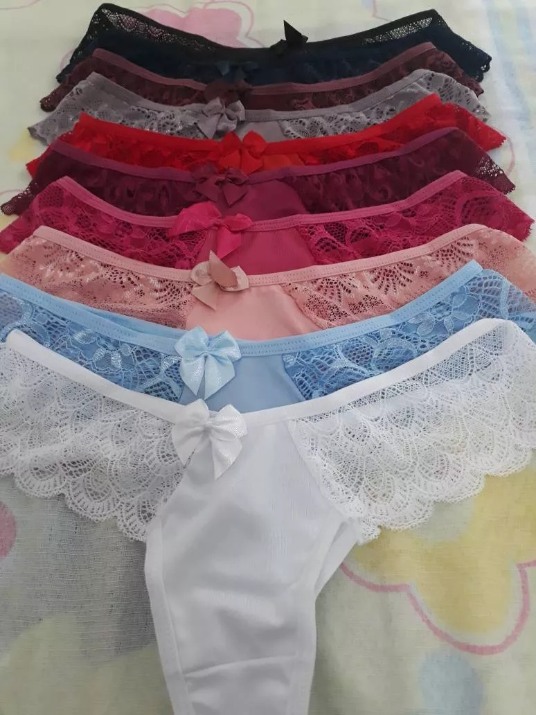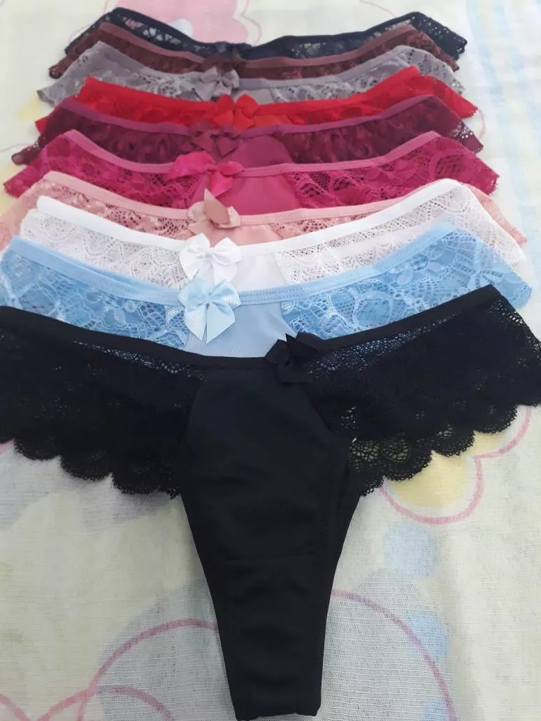 Compre o Kit com 10 calcinhas de renda e microfibra com lateral, na loja online de roupas Raryel. Preços baixos e promoções imperdíveis!