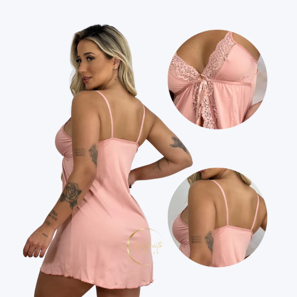 A camisola aberta de renda com calcinha combina conforto luxo e praticidade em uma peça elegante Feita com renda de alta qualidade possui abertura frontal e alças ajustáveis Acompanhada por uma calcinha de renda confortável oferece facilidade de uso e um visual sedutor É perfeita para mulheres que desejam se sentir confiantes e sensuais tanto em ocasiões especiais como no dia a dia