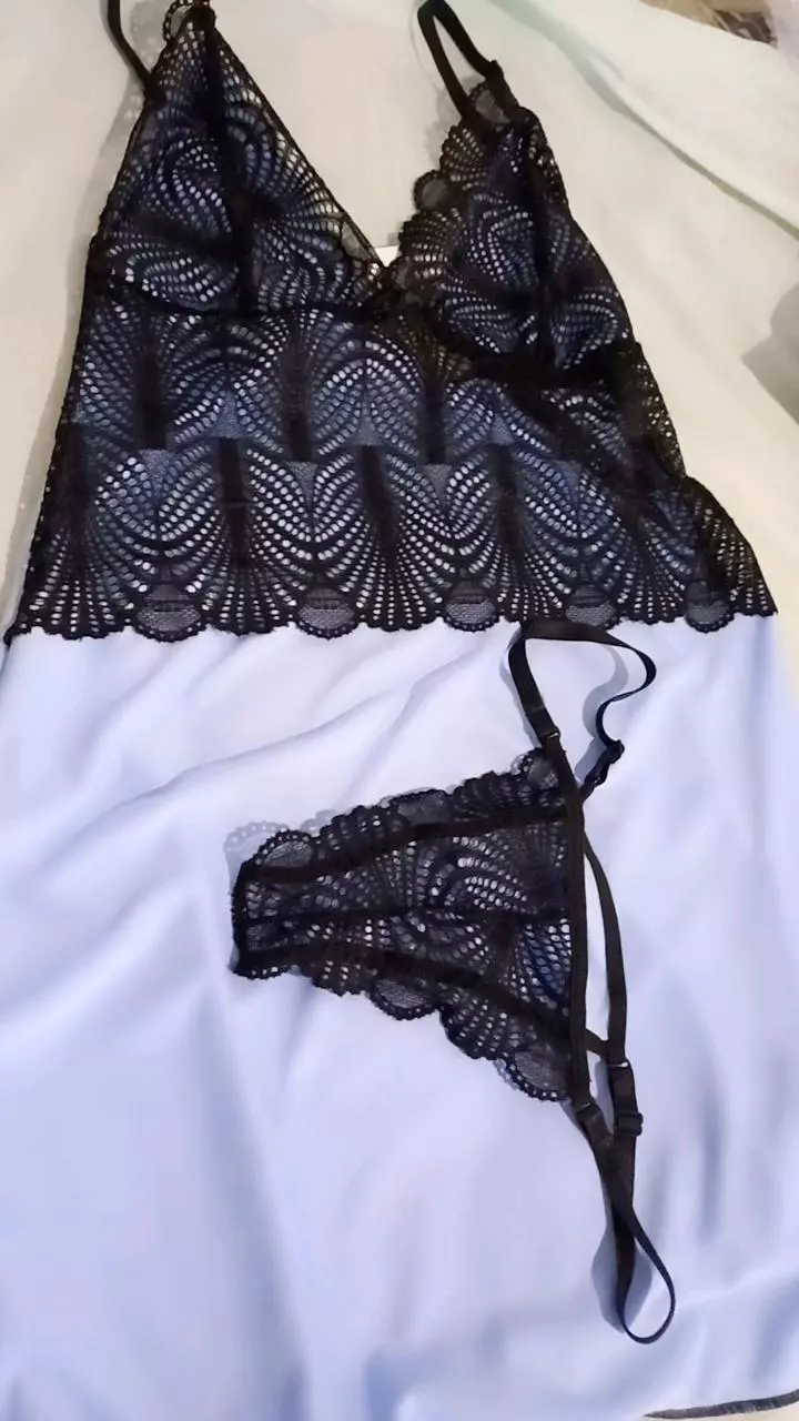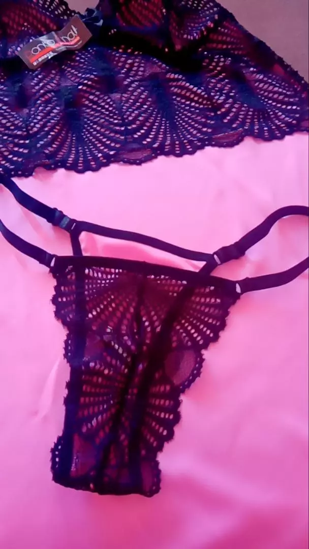 Ela vem com uma calcinha de renda perfeita para a noite