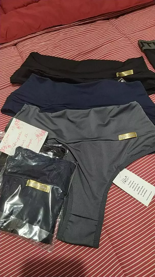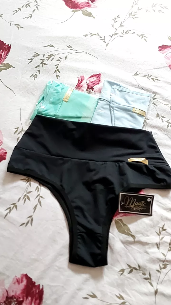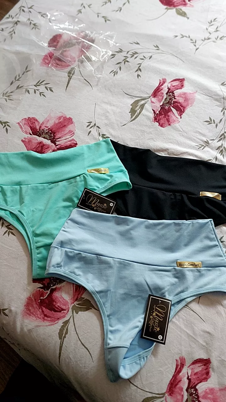 Compre o Kit com 5 calcinhas lisas de cós alto na loja online Raryel. Aproveite nossos preços baixos e promoções exclusivas!