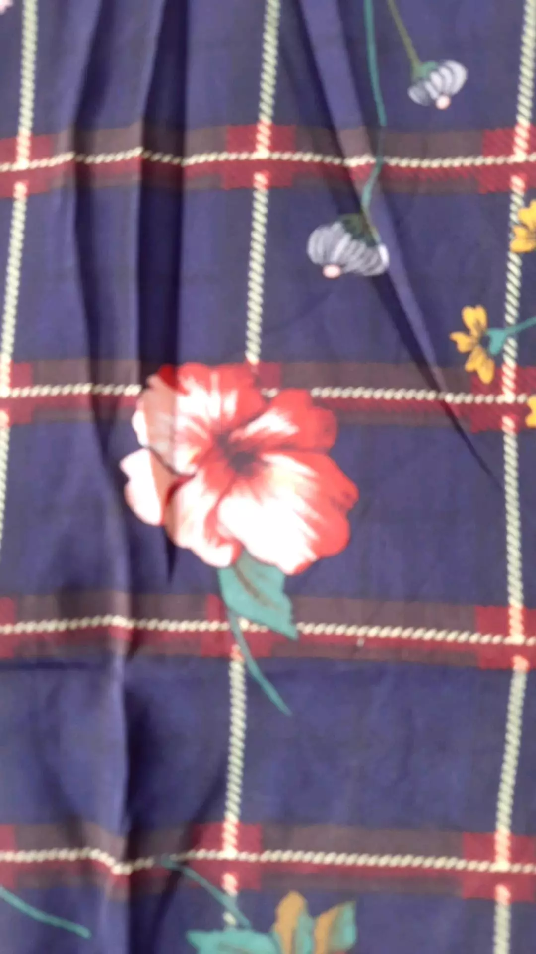Camisa Feminina Estampa Xadrez Floral Manga Curta Decote V com 3 Botões ZL3902 - 30 - Azul-marinho
