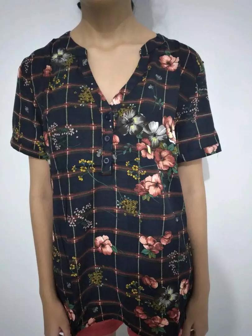 Compre a camisa feminina estampa xadrez floral manga curta decote V com 3 botões ZL3902 - 30 na loja online de roupas Raryel. Aproveite nossos preços baixos e promoções exclusivas!