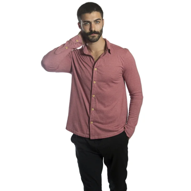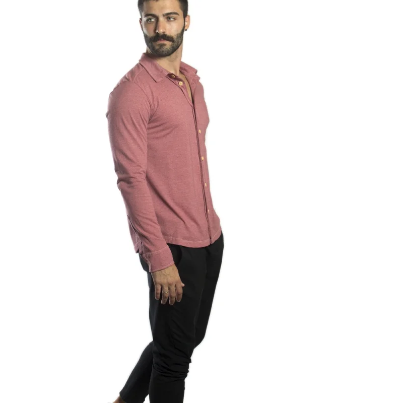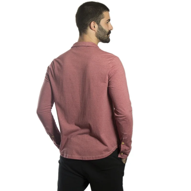 Camisa Slim Manga Longa Masculina Feita de Malha Sustentável - Bordô