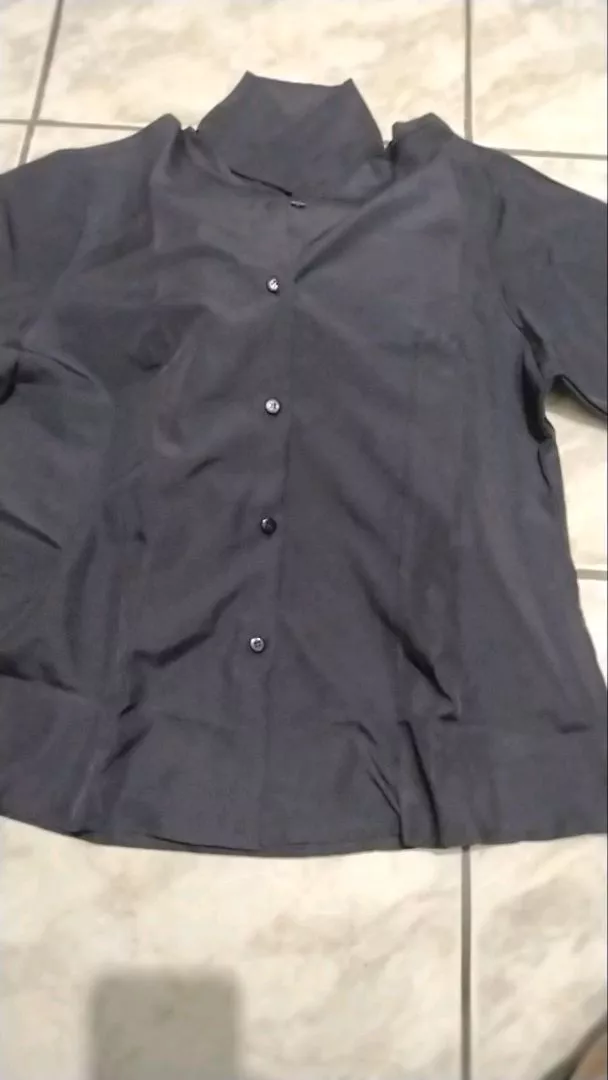 Camisa social feminina manga 3/4 branca e preta - Raryel - COR PRETA TAMANHO XGG