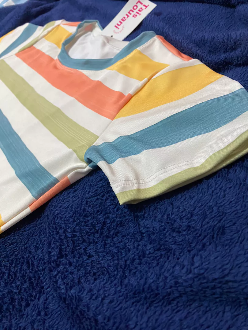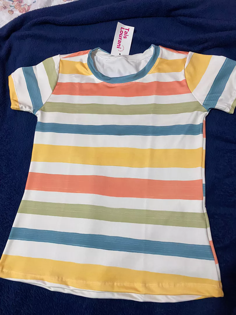 OBSERVAÇÃO IMPORTANTE ESTAMPAS LISTRADAS COLORIDAS NÃO FICAM NA MESMA ORDEM DE CORES DA FOTO DA MODELO FAVOR VERIFICAR AS FOTOS NAS AVALIAÇÕES