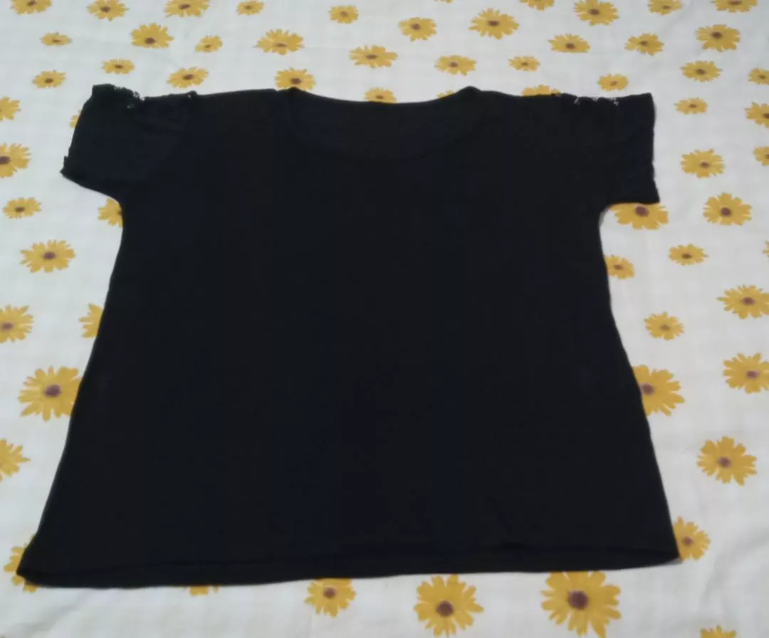 Camiseta Feminina Manga Curta com Detalhe de Renda - Blusa T-Shirt - Preta