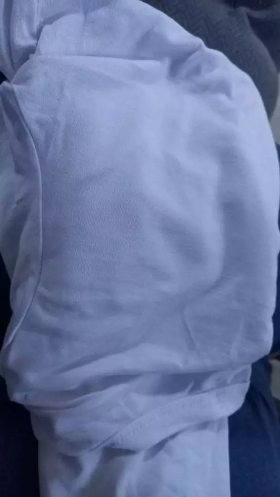 Altura do ombro na altura da gola até a barra Largura na altura do peito da parte debaixo da costura de uma manga até a outra