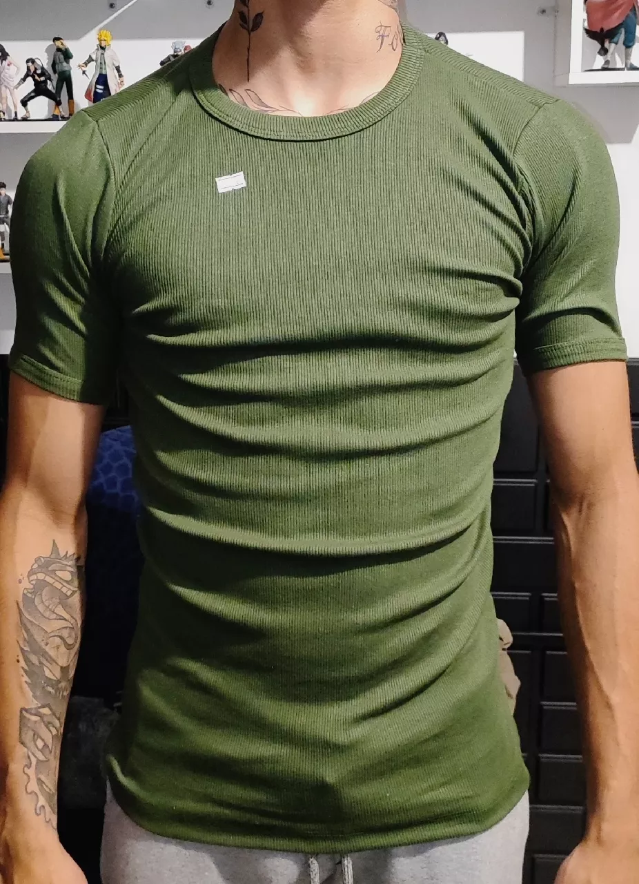 Camiseta feita de ribana seu tecido molda o corpo confortavelmente