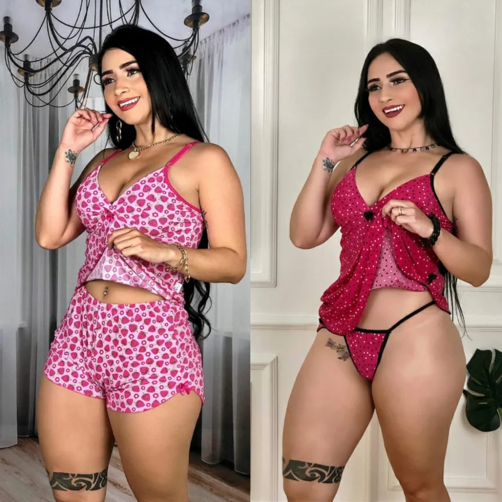 Kit Com 2 Peças 1 Camisola calcinha 1 Short Doll Baby Dol Pijama Sexy