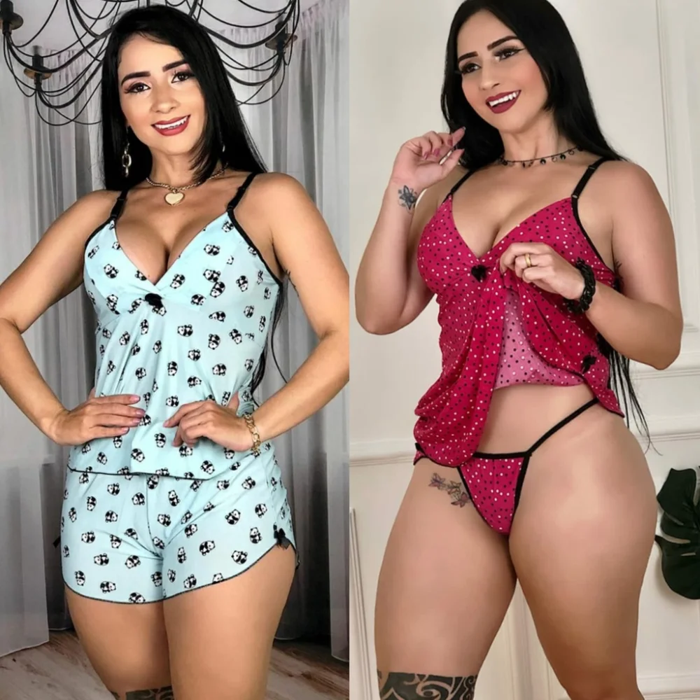 Compre o Kit 2 Camisola Feminina Sensual com Calcinha Fio/Short Doll na loja online Raryel. Aproveite nossos preços baixos, promoções e descontos exclusivos. Ideal para noites sensuais e casuais.
