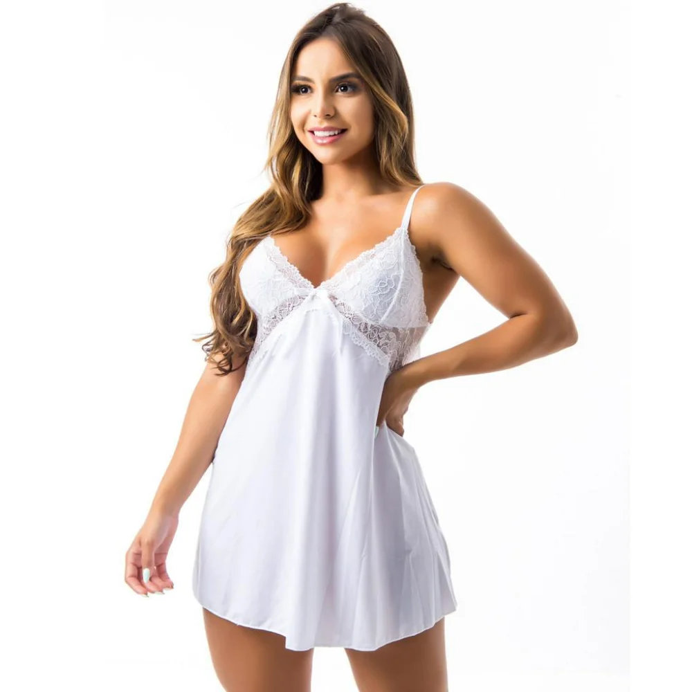 Compre a camisola sensual com costas nuas e detalhes em renda da Angelina 1695 na loja online de roupas Raryel. Aproveite nossos preços baixos, promoções e descontos exclusivos!
