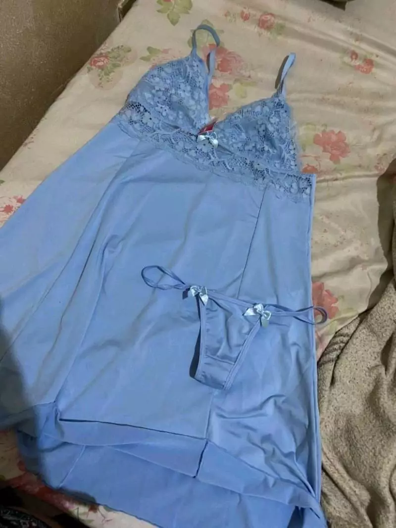 Camisola sexy Isa Belly lingerie com calcinha fio dental sem bojo - Azul Frozen