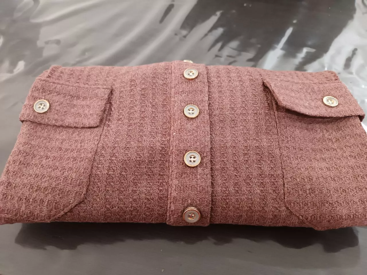 Cardigan com botões e bolso, blusa manga longa de malha - M2734 - Vinho