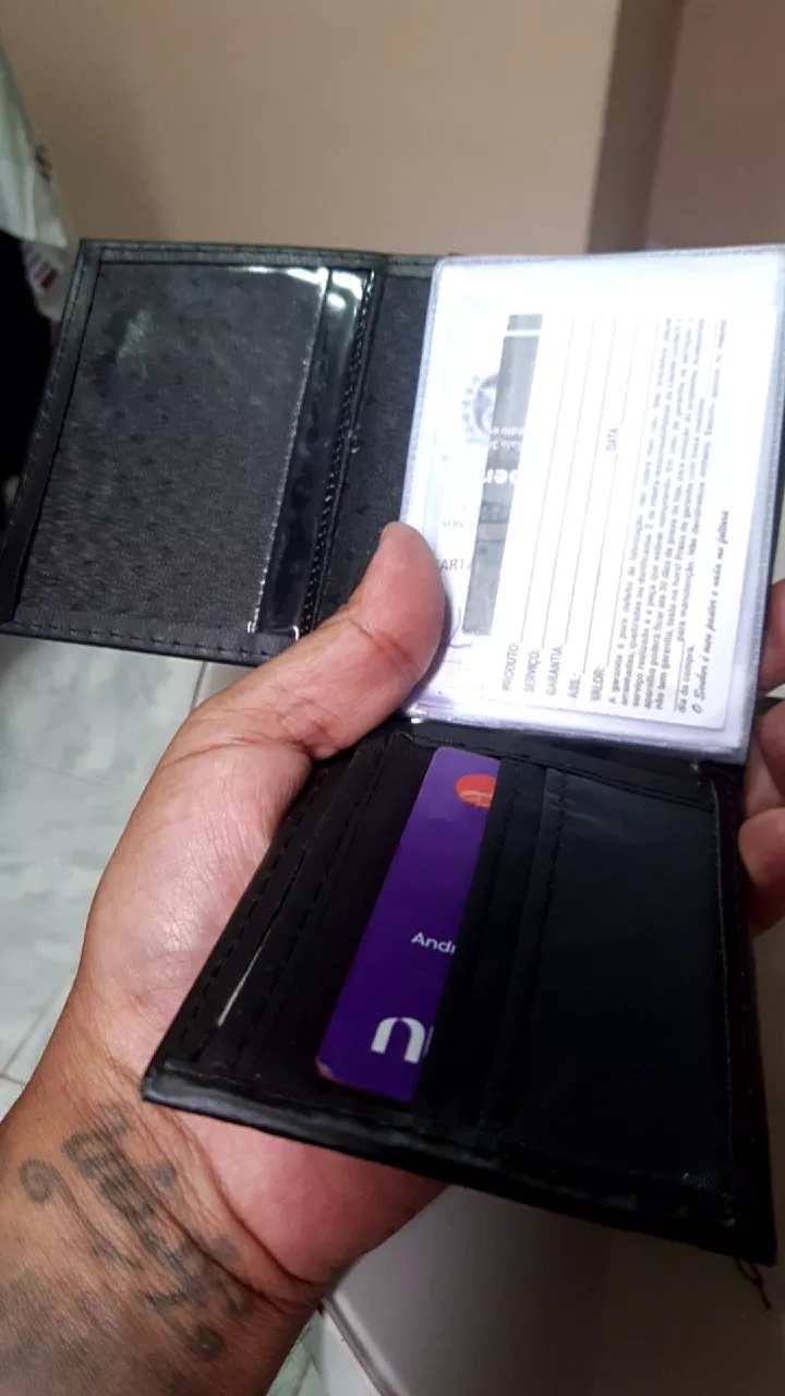 Carteira feita em couro sintético com excelente acabamento costuras firmes corte preciso e elegante