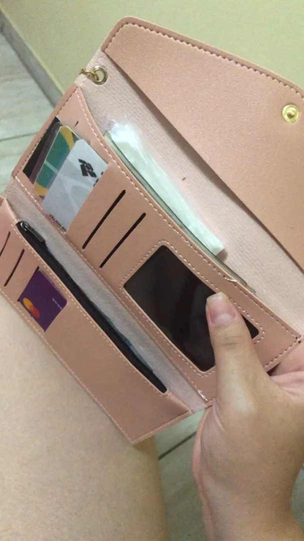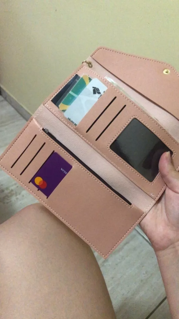Carteira comprida feminina de couro sintético com nove cores um carteira para você poder colocar seus cartões seu dinheiro com um chaveiro bem delicado para dar um charme amais na sua carteira podendo levar na sua bolsa ou na mão ela não vem com acessório para usar como bolsa apenas como carteira