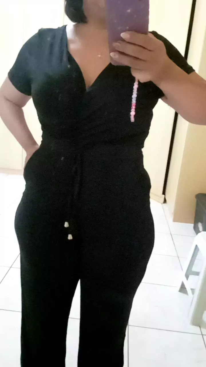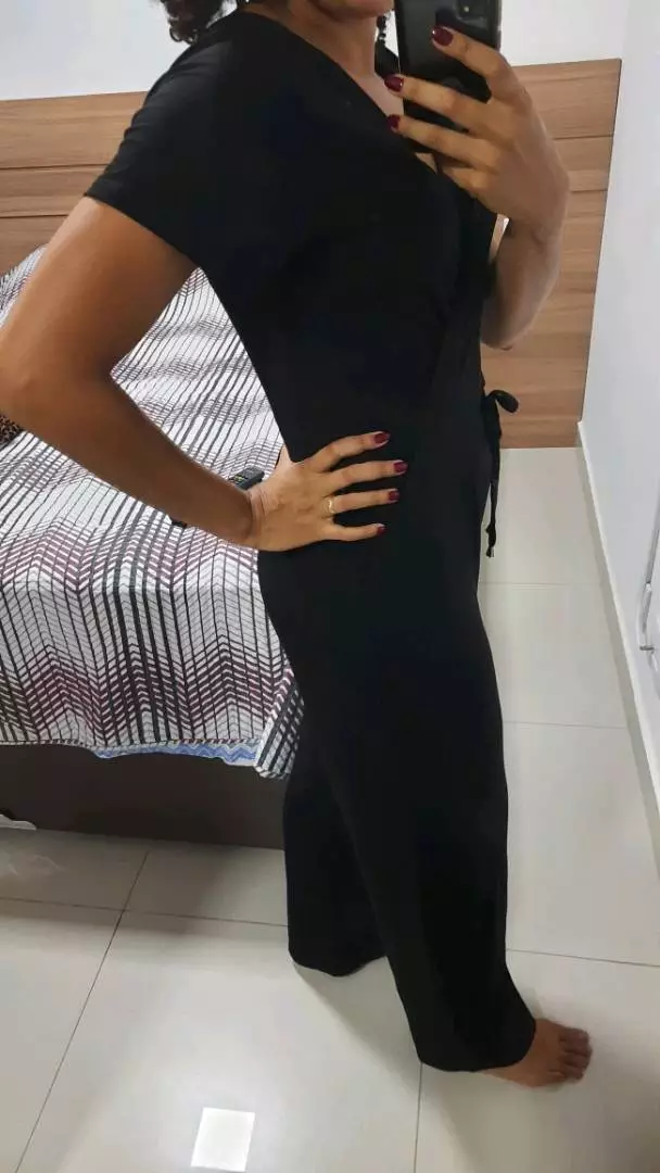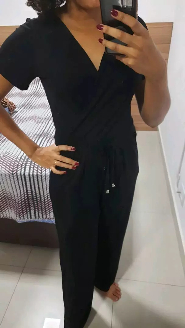 MODELO Macacão Longo Lindo macacão com 2 bolsos na frente decote nos seios e ajuste na cintura com uma cordinha Dá para usar com sapatilha ou salto alto muito chique fica lindo no corpo