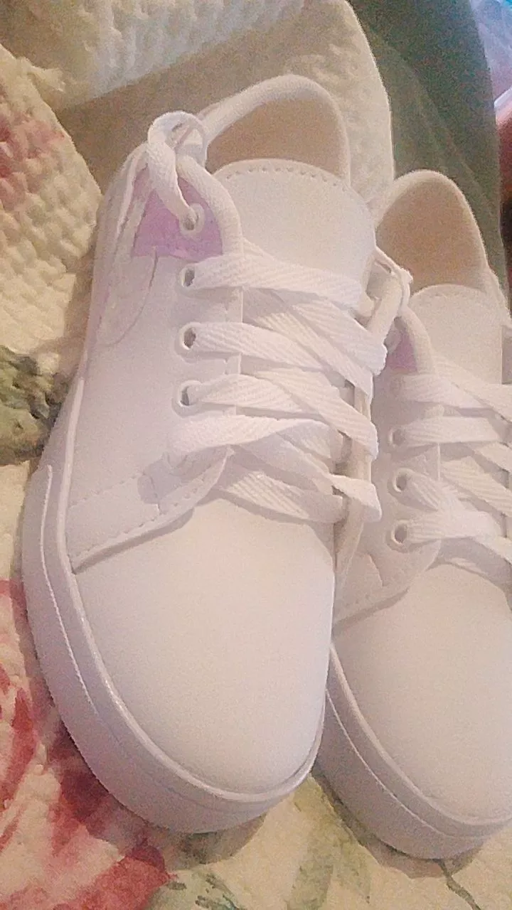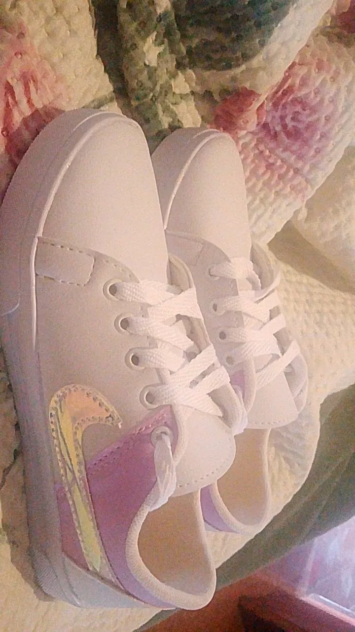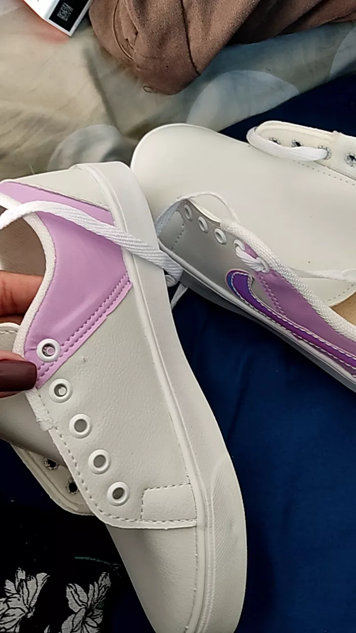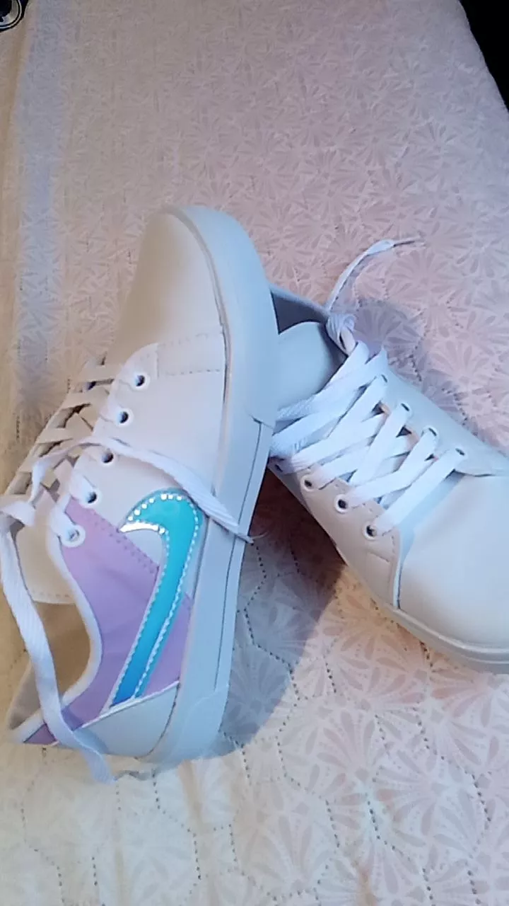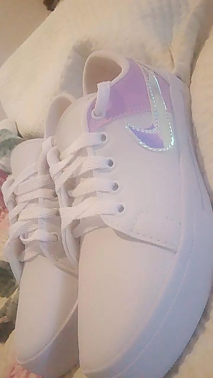 Casual Leve Holográfico Tênis Feminino Sapatênis Básico - branco/lilas