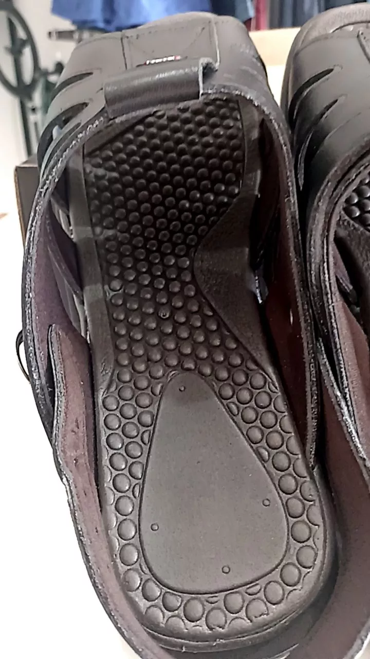 SOLADO DE BORRACHA ANTIDERRAPANTE COM ALTURA E FORMATO QUE PROTEGEM A COLUNA VERTEBRAL