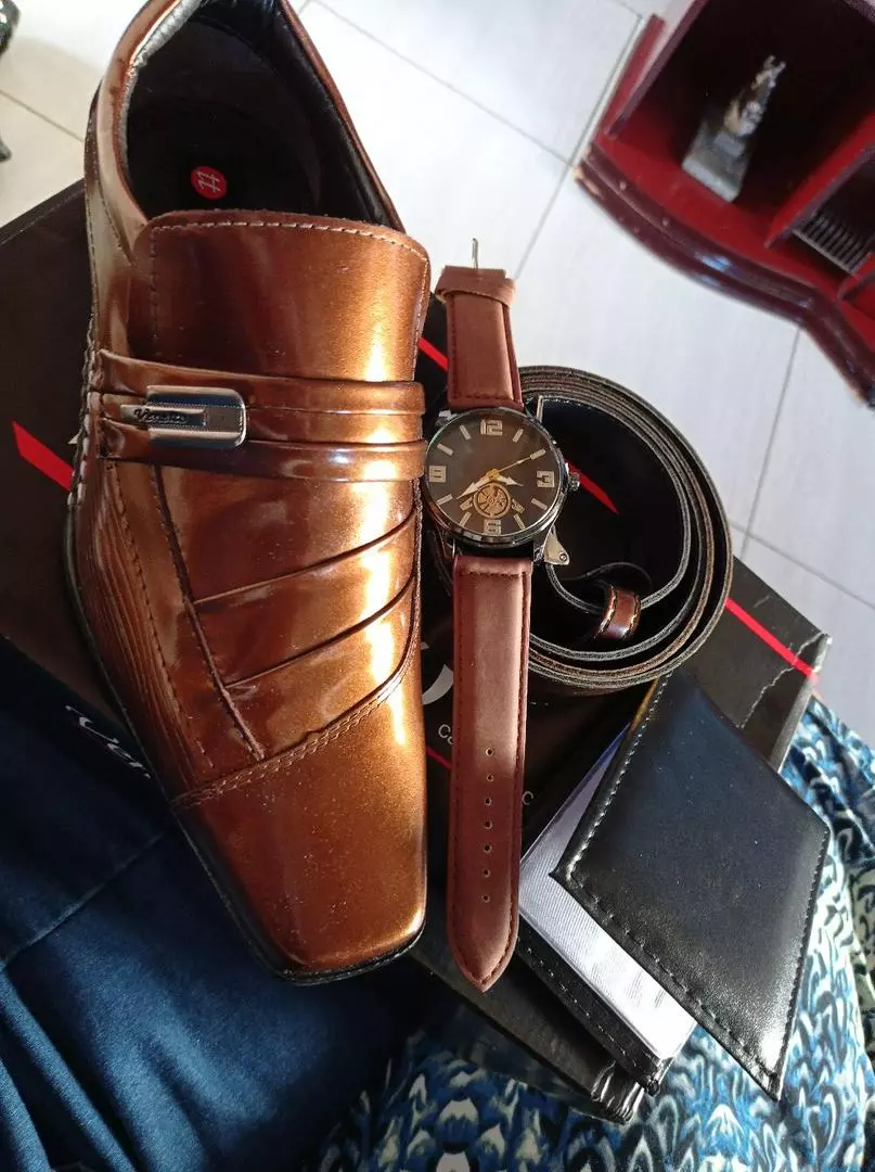 Compre o Kit Sapato Social Em Couro Dhshoes Masculino junto com um elegante relógio, cinto e carteira. Aproveite nossos preços baixos, promoções e descontos comprando na loja online de roupas Raryel.