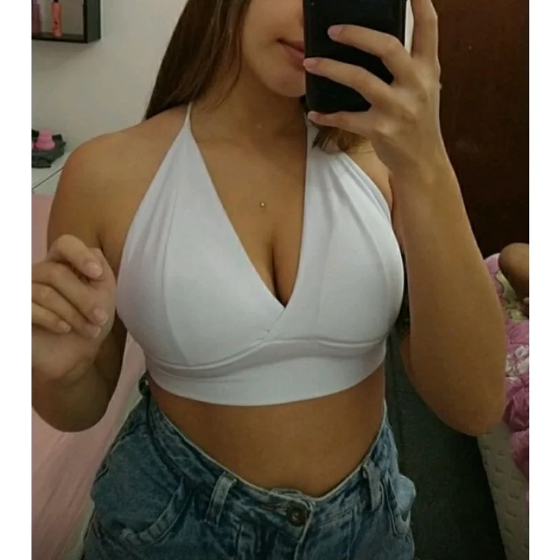 (Cod-430) Suflex Decotado Cropped Feminino Alcinha Com Bojo Tam.Unico - Branco