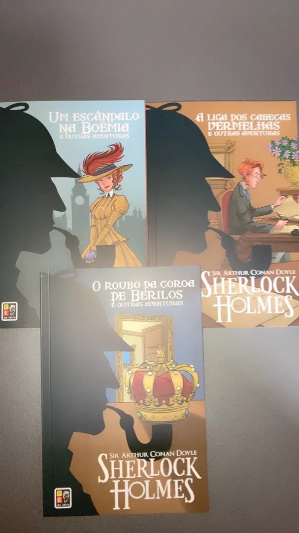 Nesse combo você encontrará 6 livros capa brochura da série sherlock holmes um estudo em vermelho um escândalo na boêmia e outras aventuras o roubo da coroa de berilos e outras aventuras o cão dos baskervilles a liga dos cabeças vermelhas e outras aventuras e o signo dos quatro