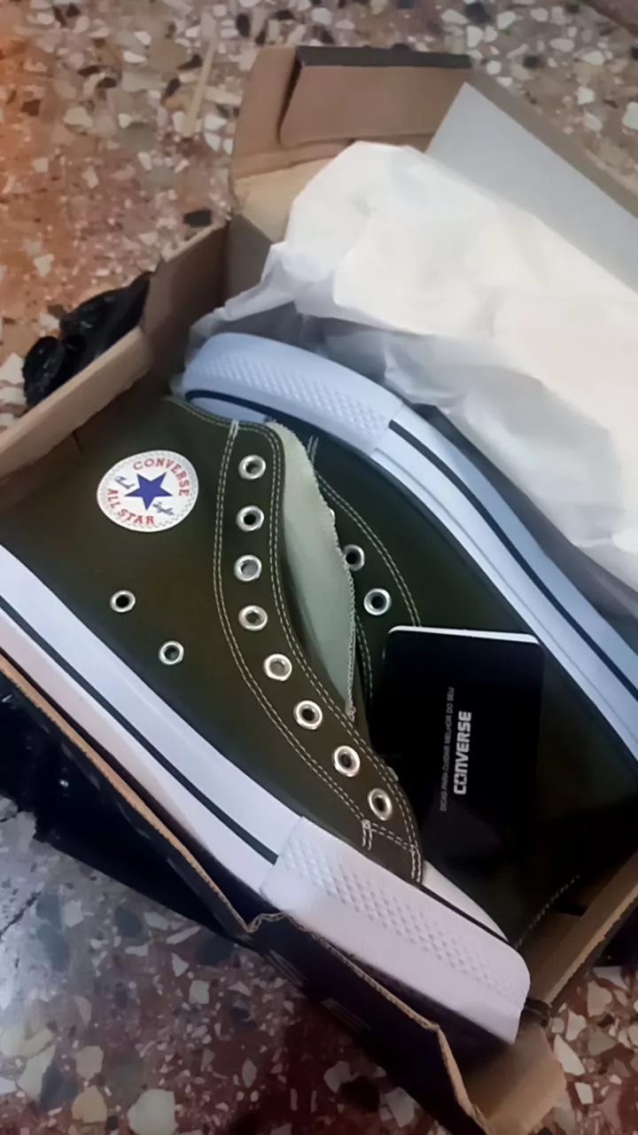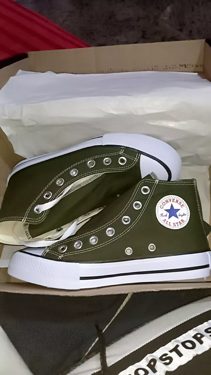 Confortável Tênis All Star Cano Alto Verde Militar Masculino e Feminino - 40