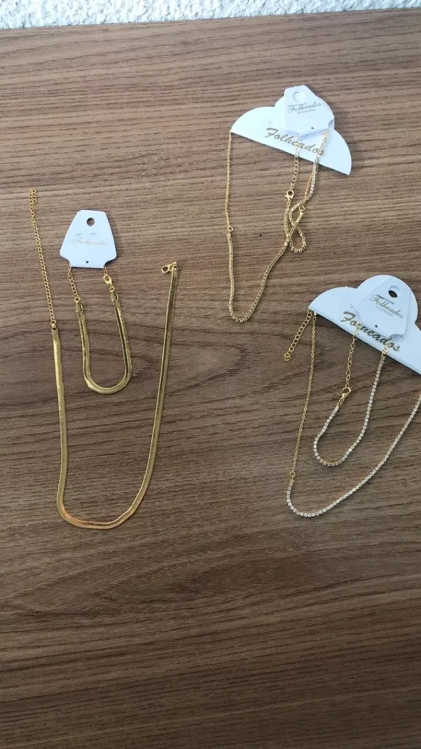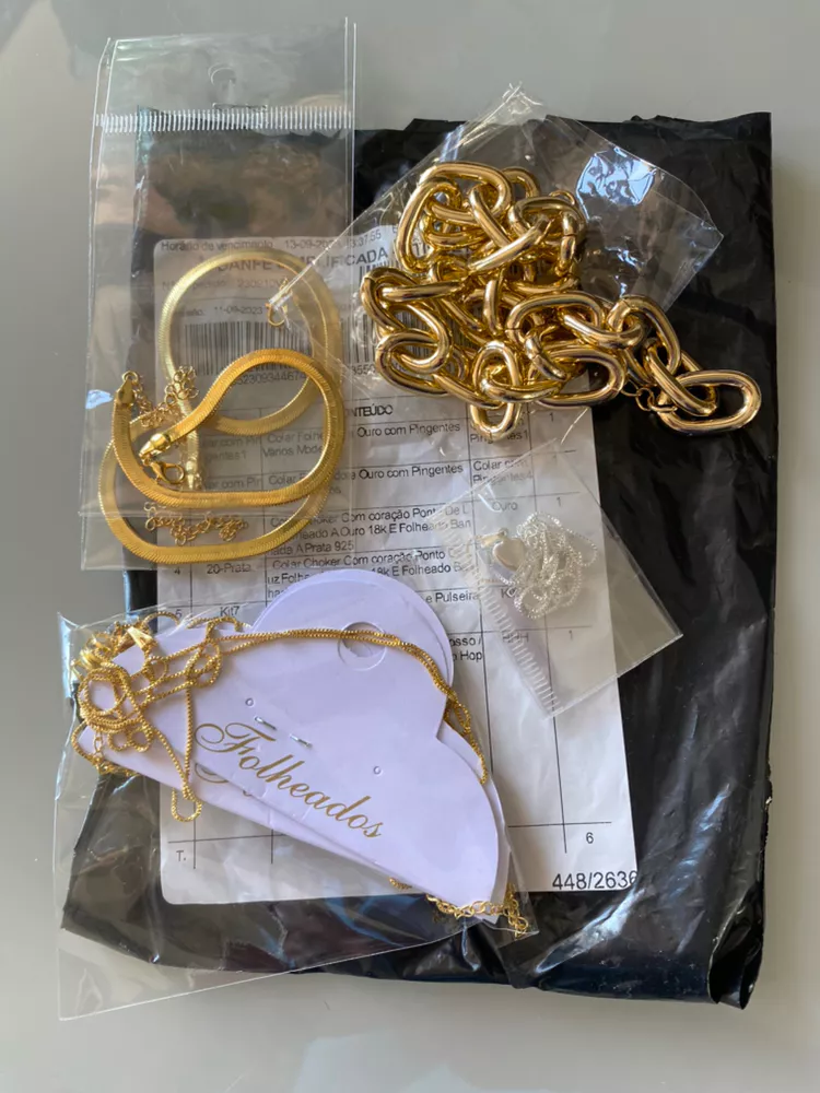 Seja Bem vindo Trabalhamos com produtos banhados e folheados temos a melhor qualidade do mercadoVenha conhecer nossa loja temos diversos tipos de produtos a partir de 10 reais isso mesmo Correntes trançadas pulseiras colares montados com pingente temos uma grande variedade de pingentes e pulseiras diversos kits personalizáveis não perca essa oportunidade aproveita o frete Grátis e compre sua prata Alguma dúvida só entrar em contato via chatMedidas aproximadas Colar 40 cmPulseira 20 cm Pode variar o modeloAntialergicasNão ficam pretas