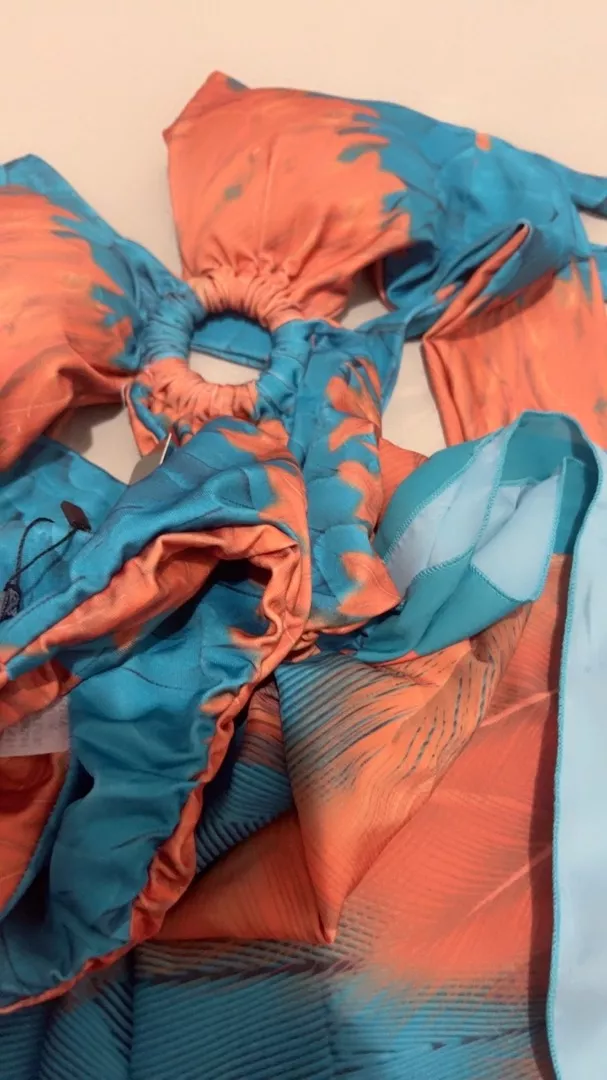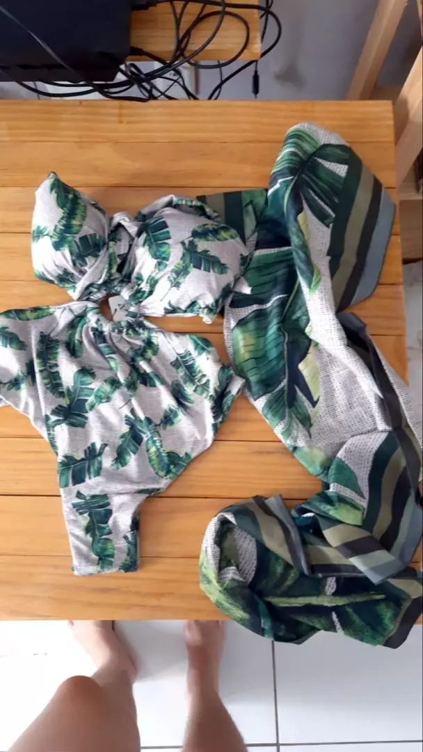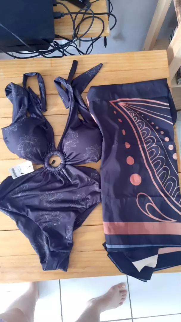 O conjunto inclui um lindo body/maiô em estampa moderna, que pode ser usado tanto como peça única quanto combinado com o páreo saída de praia. O páreo é leve, fácil de amarrar e oferece proteção solar. Feito para mulheres que buscam conforto sem abrir mão do estilo.