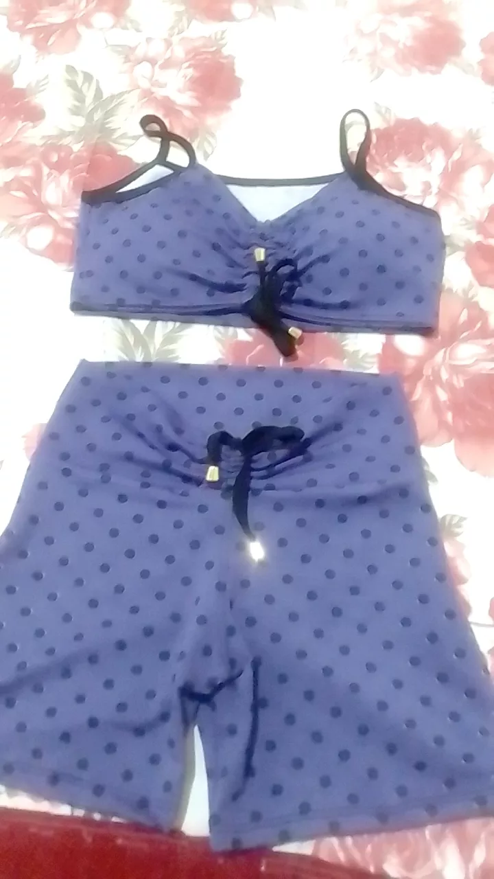 Compre agora o conjunto de short com cordinha e top com bojo para academia na loja online Raryel. Aproveite nossos preços baixos, promoções e descontos exclusivos!