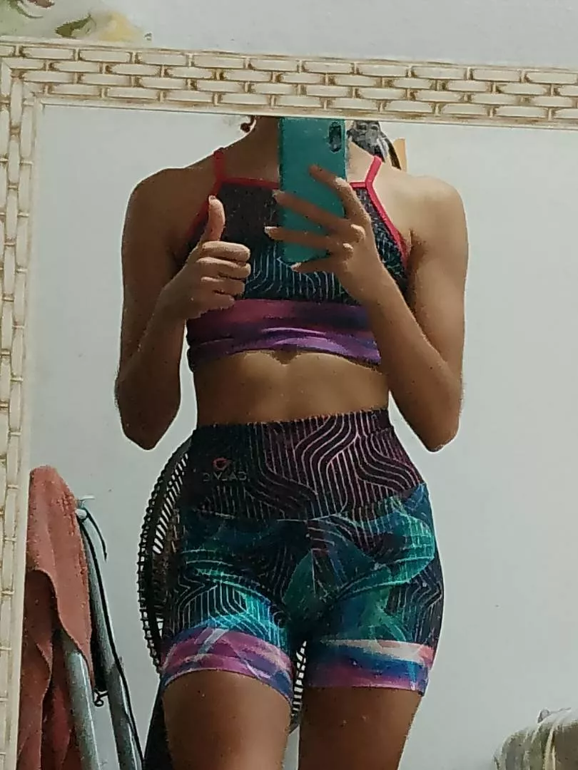 O detalhe em tela sublimada na parte superior do top é o diferencial A estampa exclusiva que deixará seu treino muito mais estiloso O conjunto tem conforto para suas atividades físicas e no dia a dia