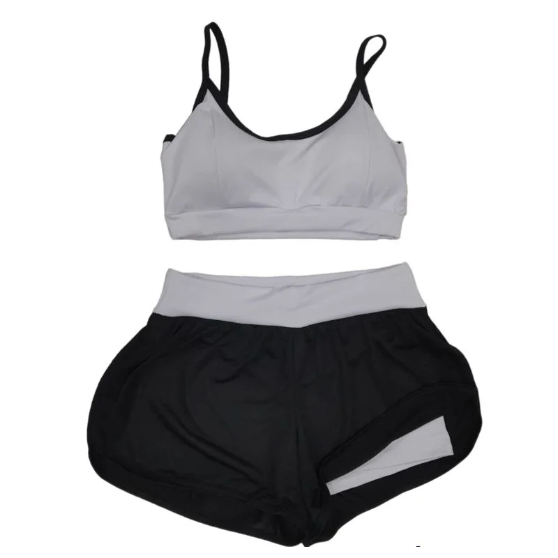 Conjunto Fitness Corrida Top com Bojo e Short Duplo - Roupa de Academia - PRETO COM BRANCO