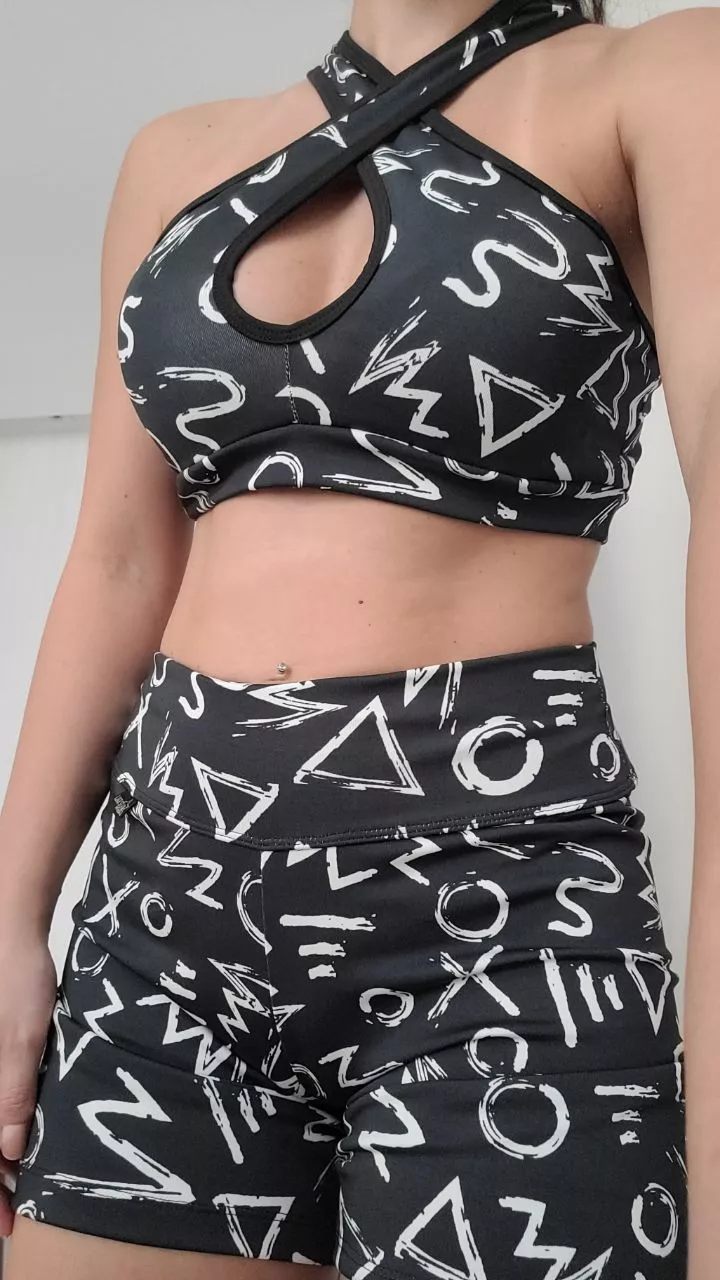 Conjunto Fitness Estampado Feminino - Short e Top para Academia - Estampa 08