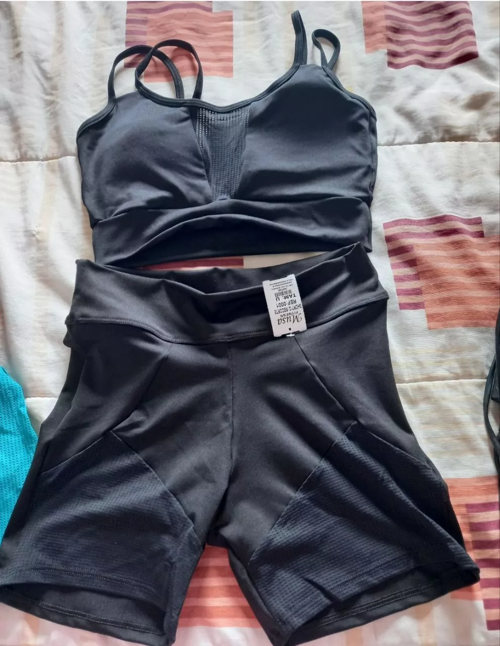 Conjunto Fitness Suplex Feminino - Top e Short 3D - Short Preto