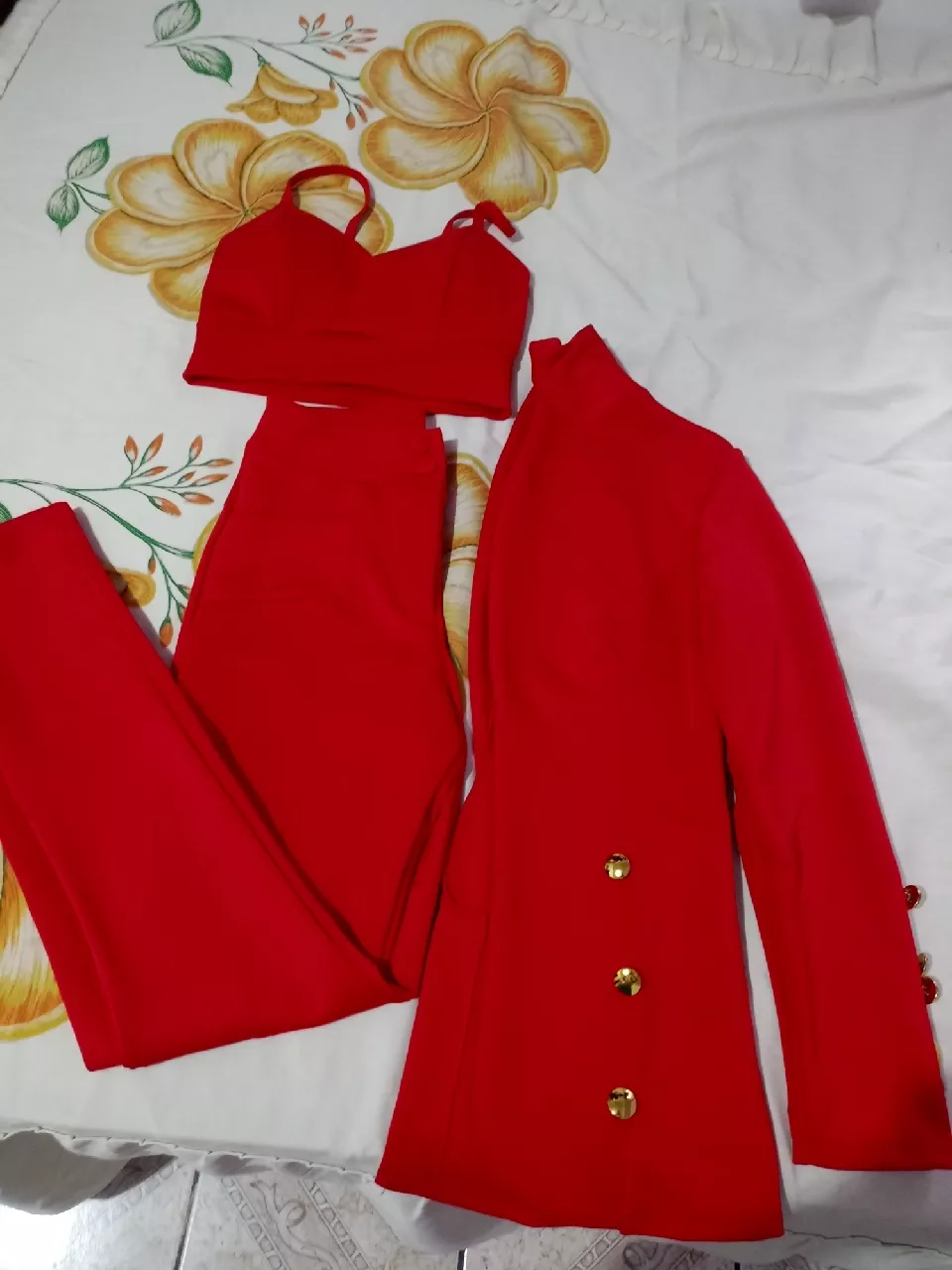 Conjunto Premium Max Blazer, Calça e Cropped em Neoprene Feminino - Vermelho