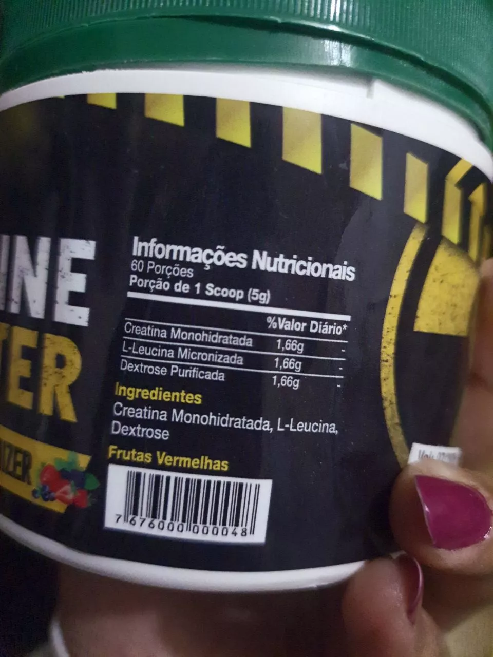 ingredientes Creatina Monohidratada LLeucina DextroseUso sugeridoMisture uma porção 1 colher em 812 floz de água fria e consumir antes durante ou após o treino Use como parte de uma dieta saudável e programa de exercíciosAvisosApenas para uso adulto Não use se estiver grávida ou amamentando Consulte um médico antes de iniciar uma dieta ou programa de exercícios ou se tiver uma condição médica Mantenha fora do alcance de criançasNão use se a embalagem tiver sido adulterada Armazenar em local fresco e seco 60ºF a 80ºF