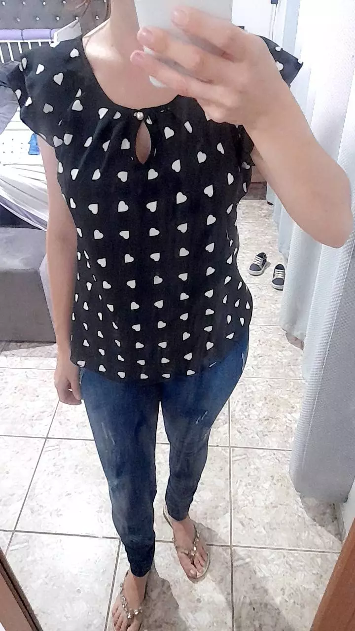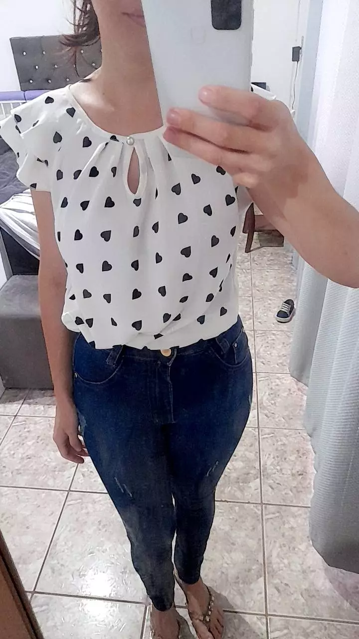 Compre a blusinha feminina social crepe estampa coração na Raryel e aproveite nossos preços baixos, promoções e descontos. A peça é feita em crepe de alta qualidade, possui uma linda estampa de coração e é perfeita para ocasiões sociais. Adquira já a sua!