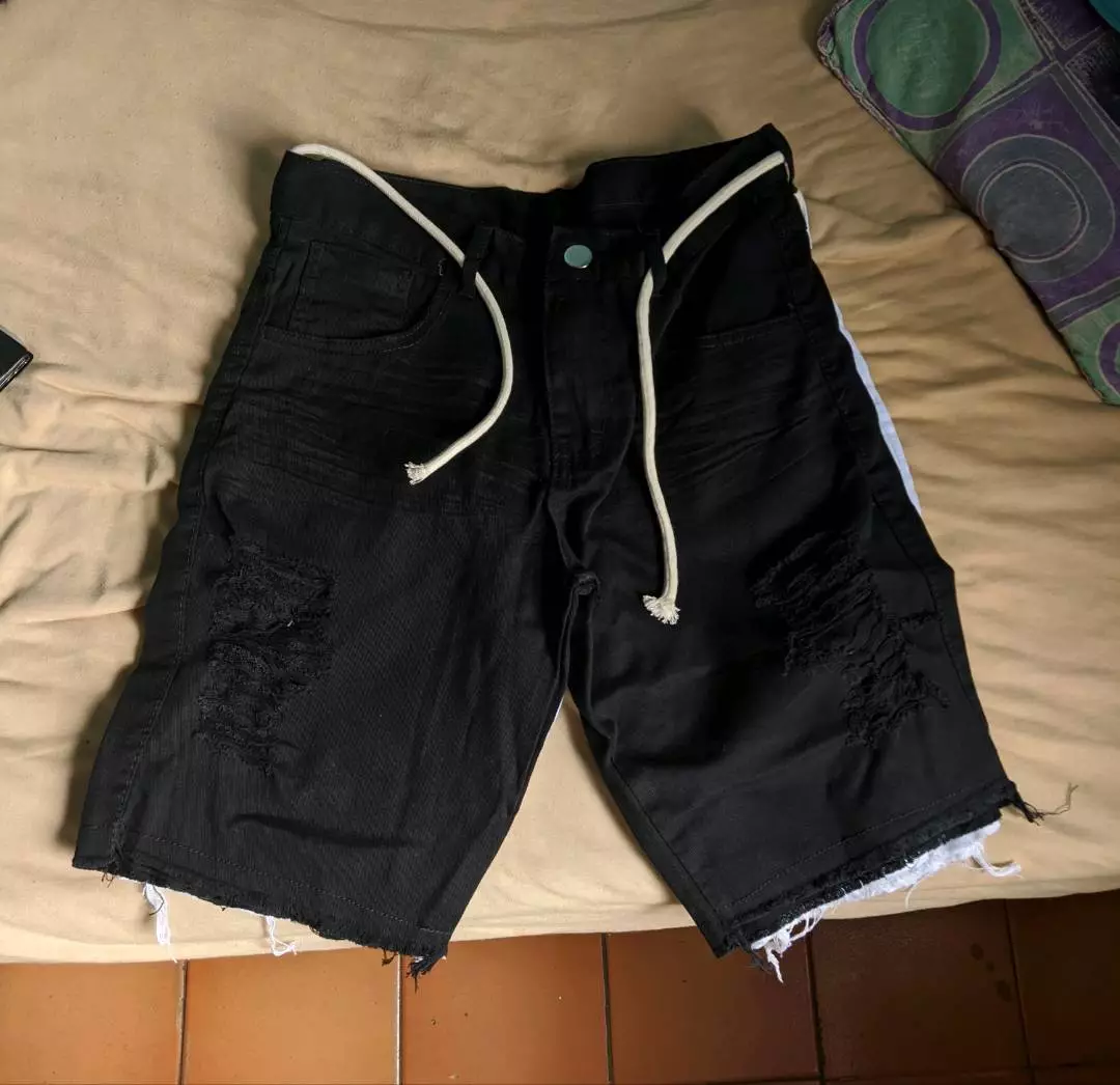 Compre a Bermuda Jeans Masculino Destroyed Short com cordão na loja online Raryel. Aproveite preços baixos, promoções e descontos!