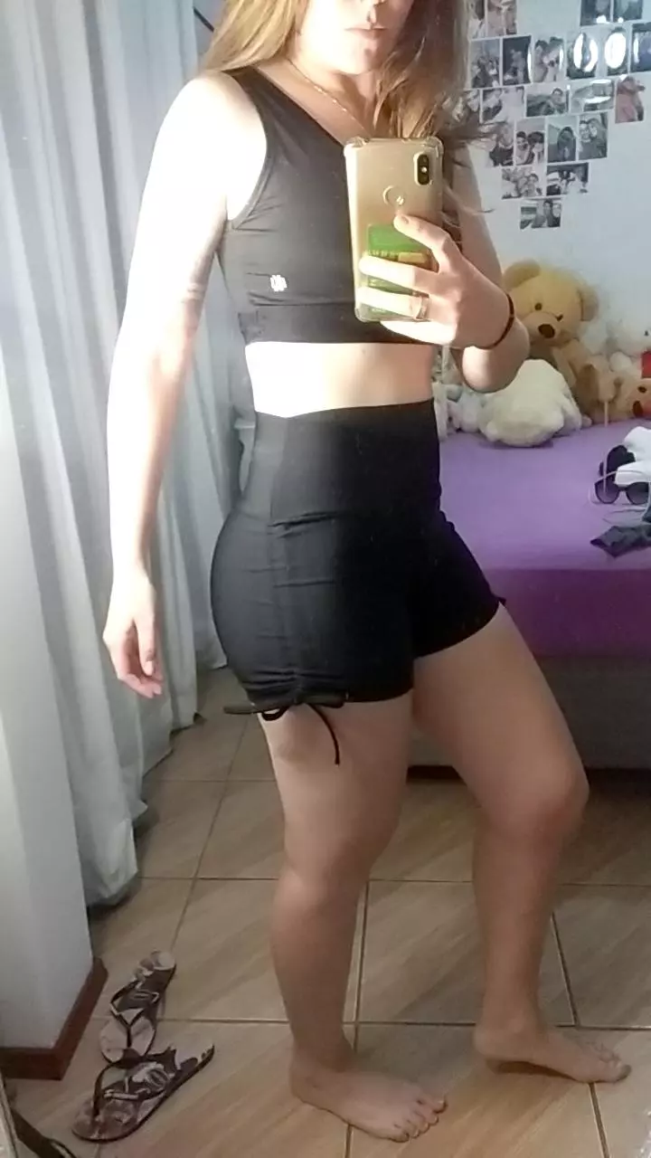 o tecido preto é mais grosso sugiro que compre um tamanho maior Exemplo se usar P peça o M
